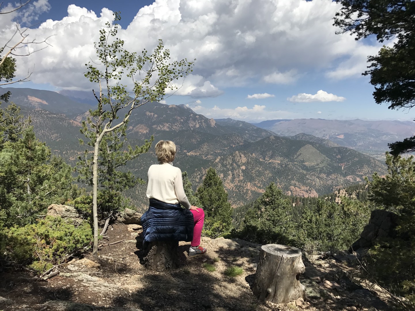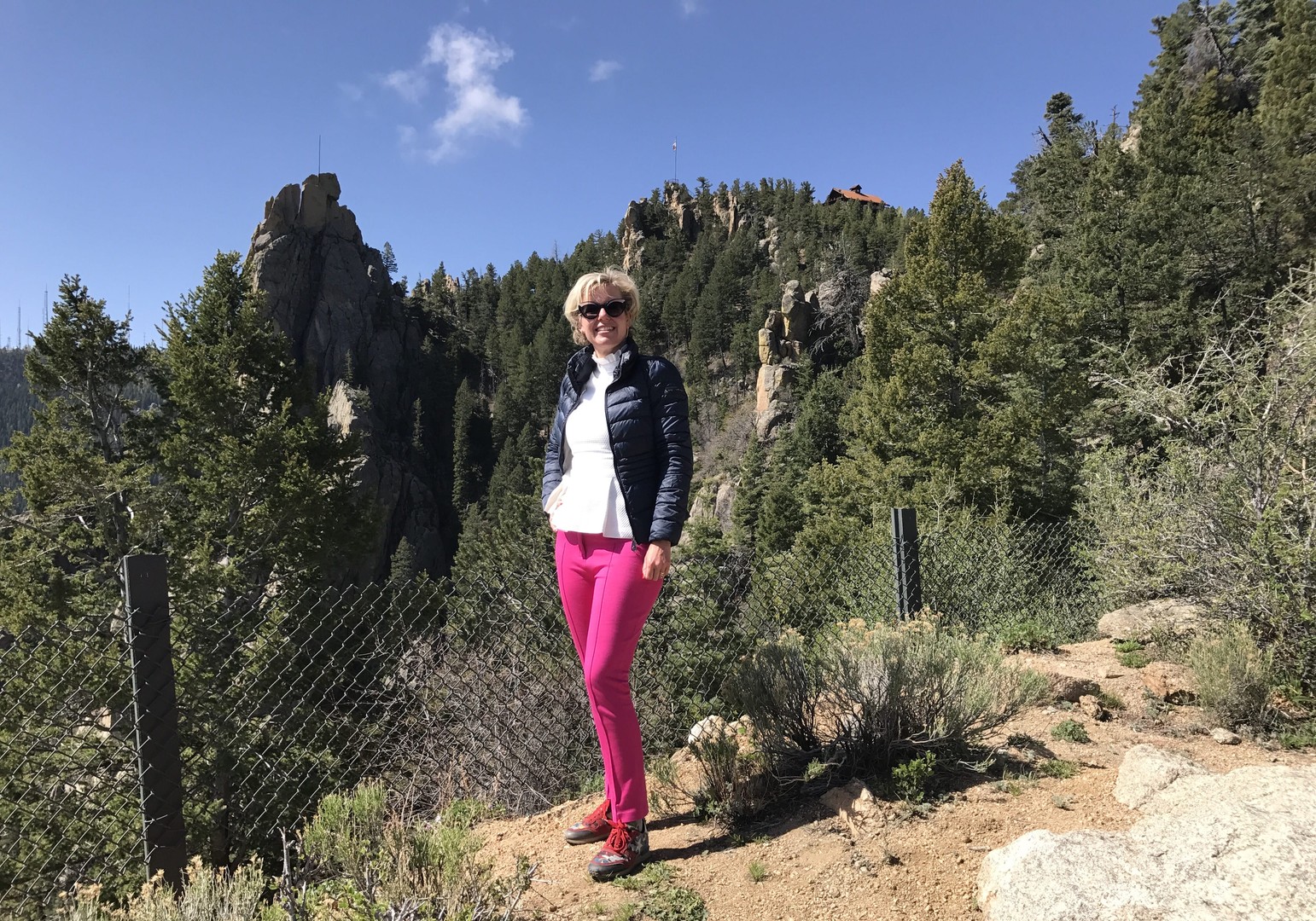 Behalve dat je de luxe ervaart om, zo hoog boven de wereld, even helemaal los te komen van het leven van alledag, zijn er activiteiten die dat gevoel van loskomen, van vrijheid, verder aanwakkeren. Elske: ‘Als je wilt, kun je de hele dag gaan wandelen, yogales nemen, boogschieten of gewoon mijmeren en genieten van het magnifieke uitzicht.’ Zelf logeerde Elske in een onderkomen met de naam ‘Fisher Cabin’, een luxe houten onderkomen met privébalkon. ‘In de verte zie je de spectaculaire rotsformaties van de Garden of the Gods. En verder heb je een fantastisch uitzicht op Pikes Peak met een top van 4300 meter, maar ook, op “Paaseiland-achtige”-kei partijen in de directe omgeving van de lodge.’