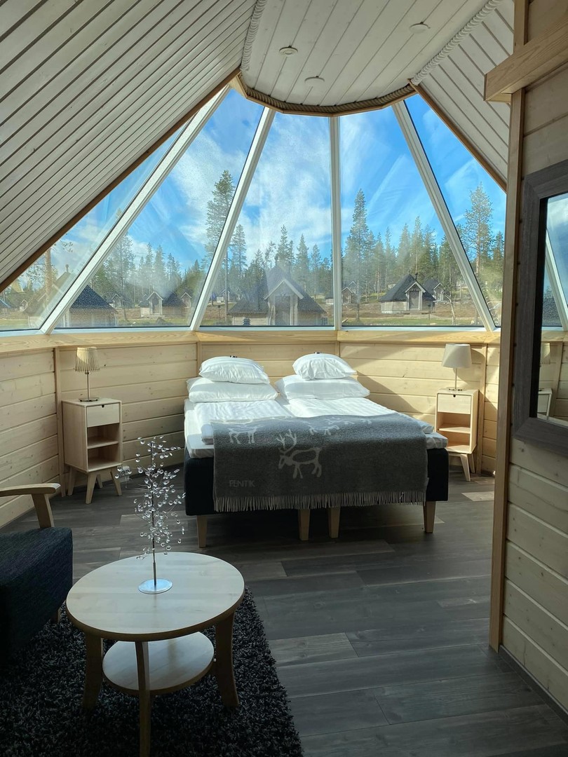 Bij deze unieke accommodatie overnacht je in de zogenaamde Aurora Cabins. Deze cabins zijn zo bijzonder aangezien deze accommodaties zijn voorzien van een heel groot glazen raam waardoor je direct vanuit het heerlijke bed kunt genieten van de meeste prachtige luchten. Dit raam is voorzien van een verwarming waardoor ook in de winter of tijdens vochtige dagen ook van het prachtige uitzicht genoten kan worden. In de zomer kan je hier de Middernachtzon aanschouwen. Dit is een prachtige fenomeen waarbij de zon gedurende de hele nacht niet ondergaat. De zon blijft dan boven de horizon staan en dit zorgt de hele nacht voor een rode gloed aan de horizon. Dit natuurfenomeen is eigenlijk alleen boven de poolcirkel te aanschouwen.